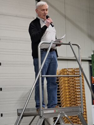 Onze voorzitter Ruud Schaake heeft het afgelopen jaar besproken en aangegeven dat we heel gemotiveerd en goed bezig zijn. Zelfs tijdens de slechte weersomstandigheden van de vorige week waren de vrijwilligers present om de pakketten uit te kunnen reiken aan onze klanten.